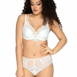 Soft Cup Bra, Sheer Mesh, Straps Over Bust, Eyelash Lace, D To M-cup