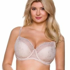 Comfortable Bra, Partially Sheer Cups, Lace Embroidery, C To M-cup