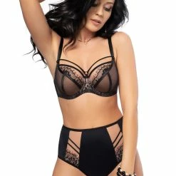 High Waist Panties, Elastic Microfiber, Eyelash Lace, Mesh Inlay