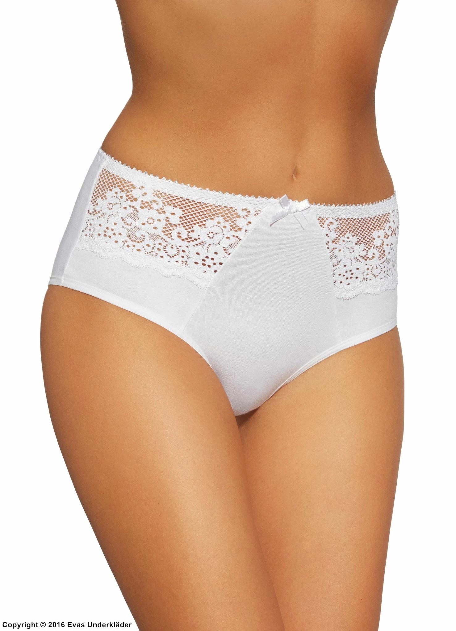 Lace inlays; slightly higher waist - Fabric specification: 95% cotton, 5% elastane (a.k.a Spandex / Lycra)