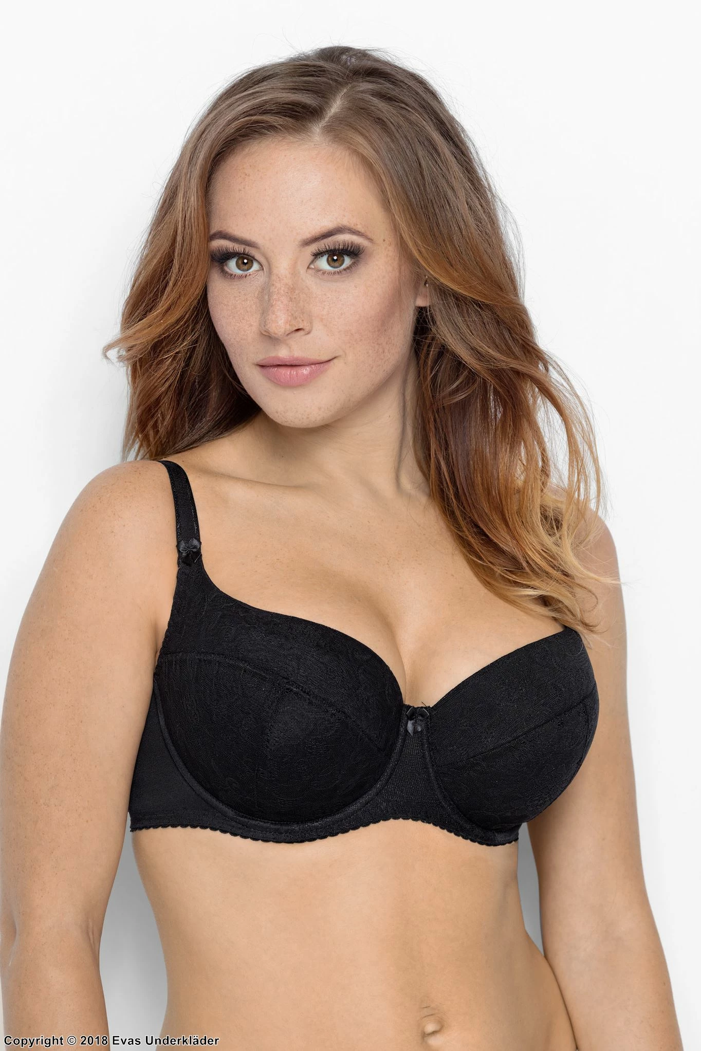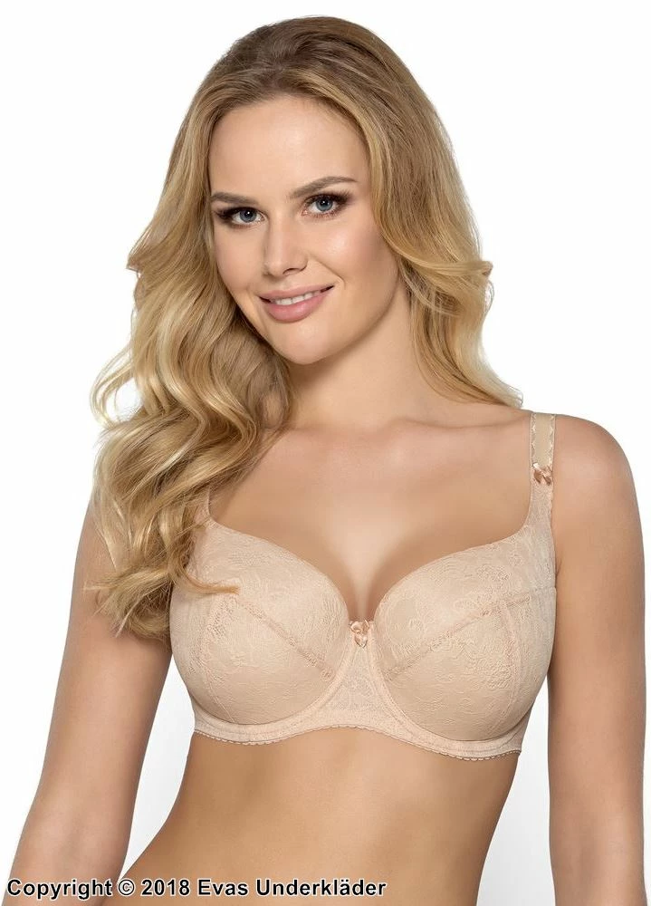 Romantic Big Cup Bra, Wide Shoulder Straps, Partially Sheer Cups, Luxurious Lace, D To M-cup