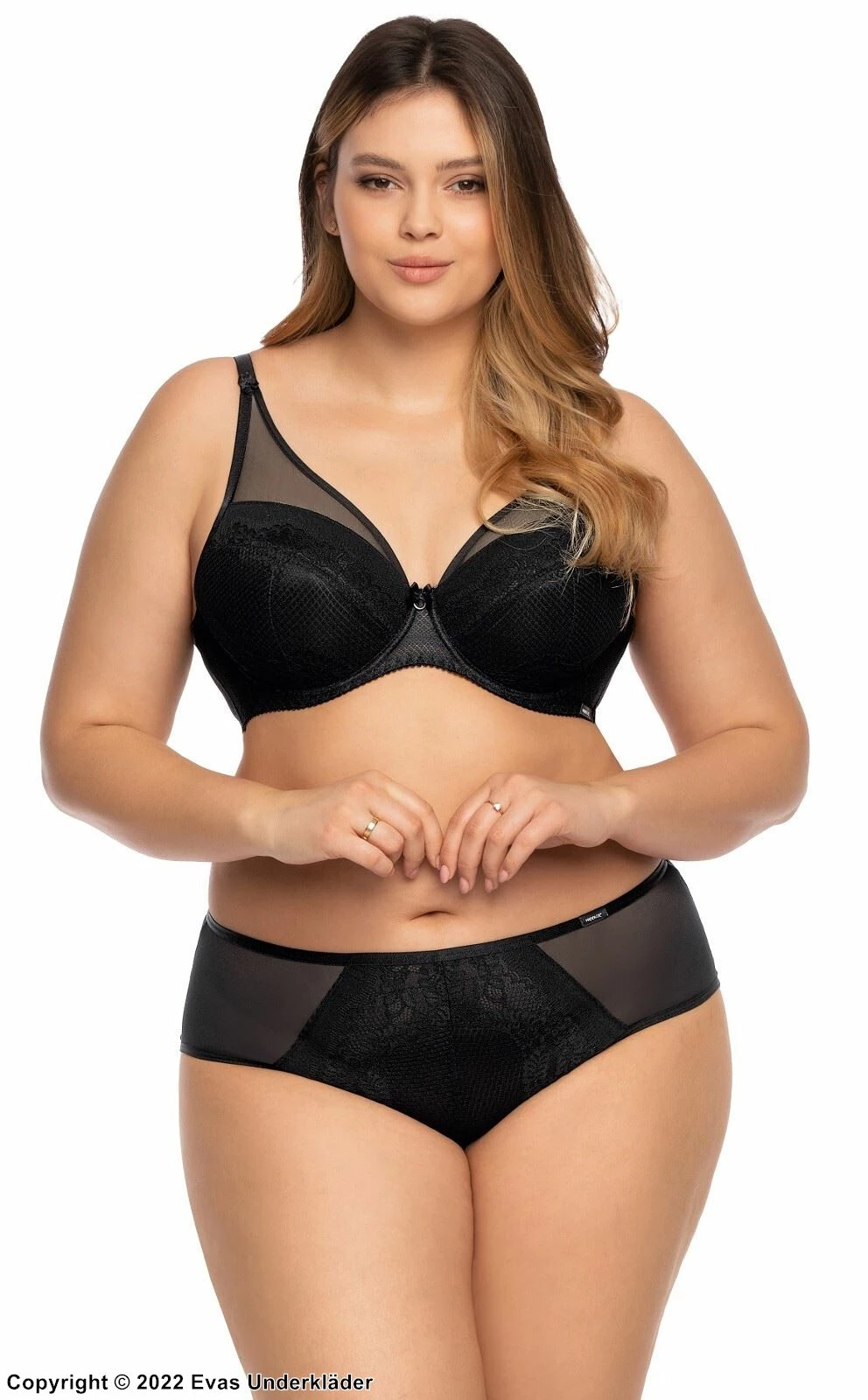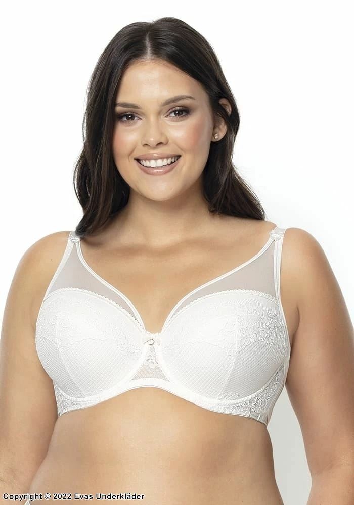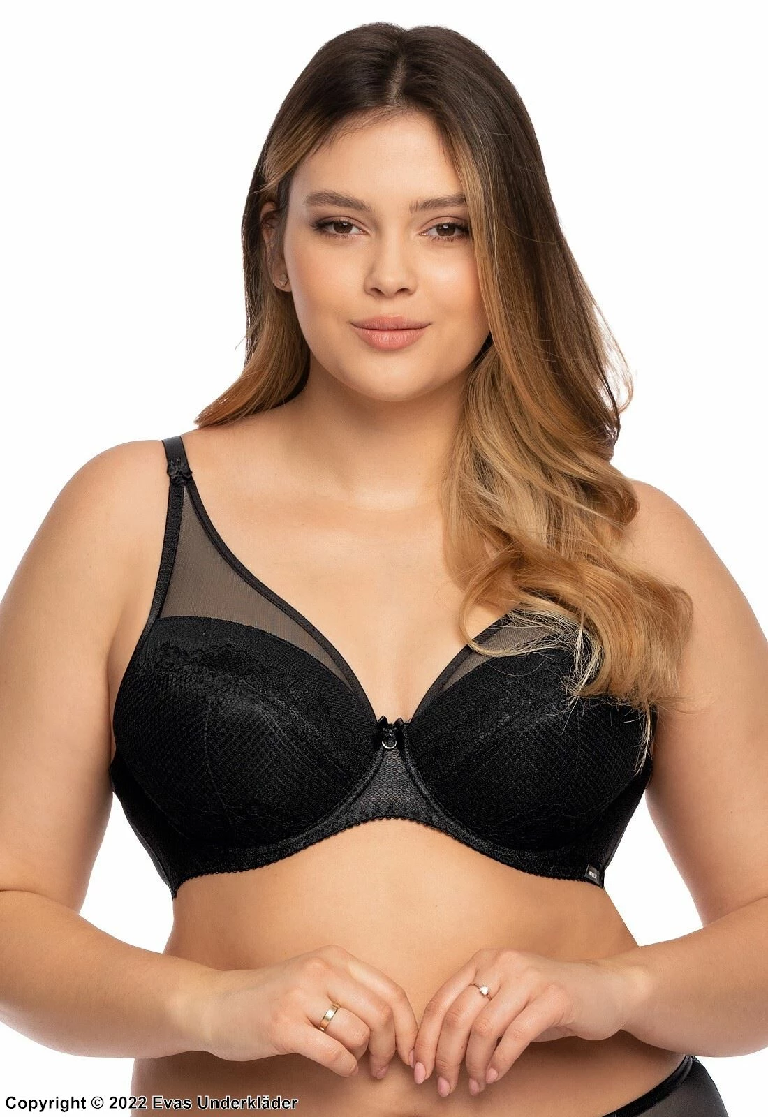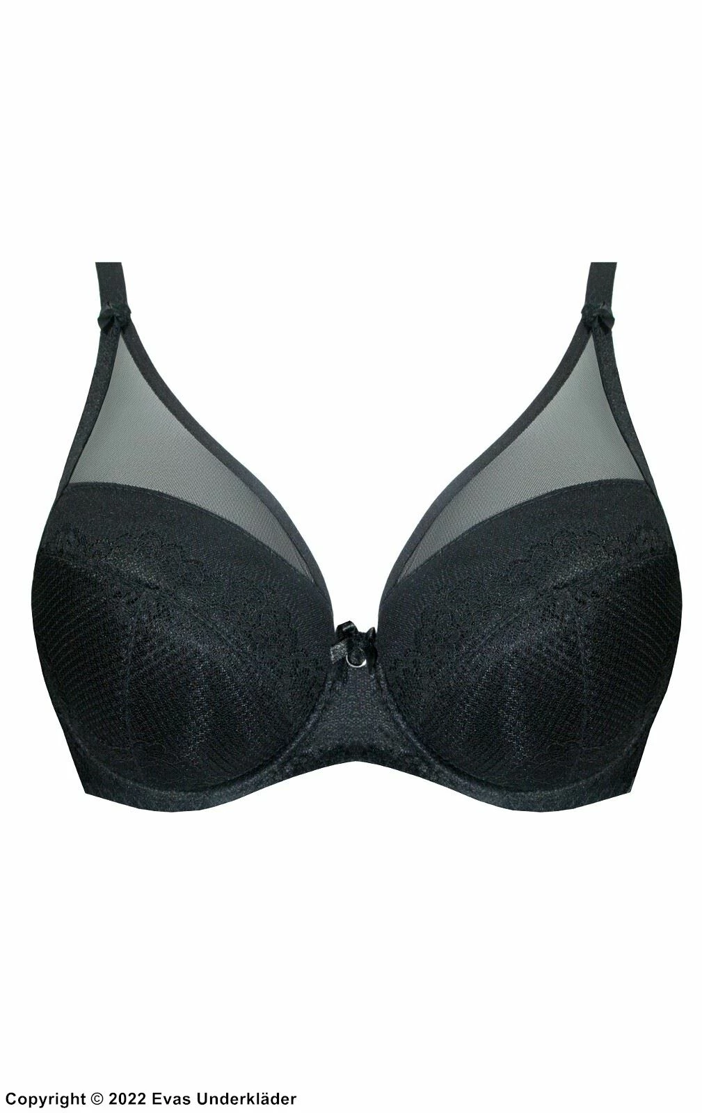 Sheer inlays; lace cups - Sizes: B to H-cup