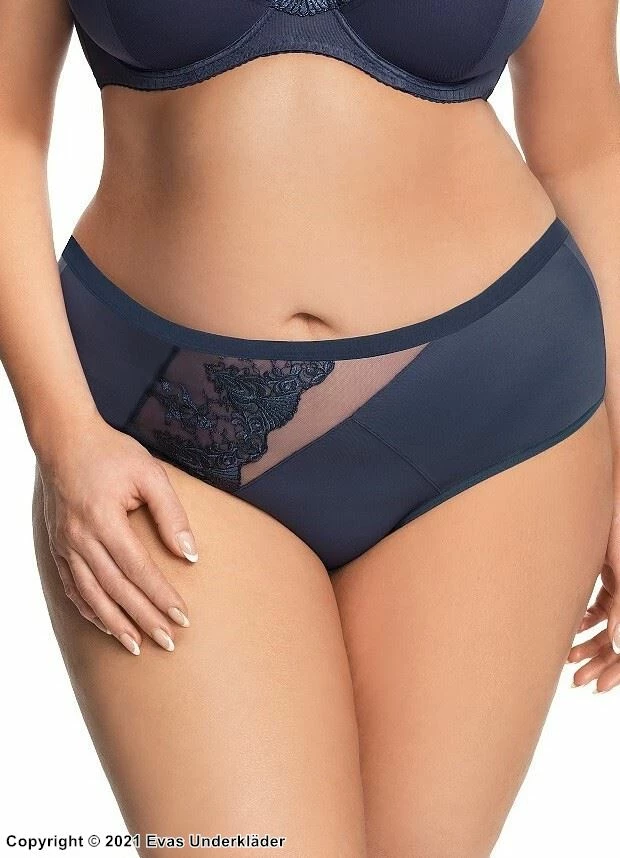 Embroidery; slightly higher waist; sheer inlay - Fabric specification: 90% polyamide, 7% elastane, 3% polyester