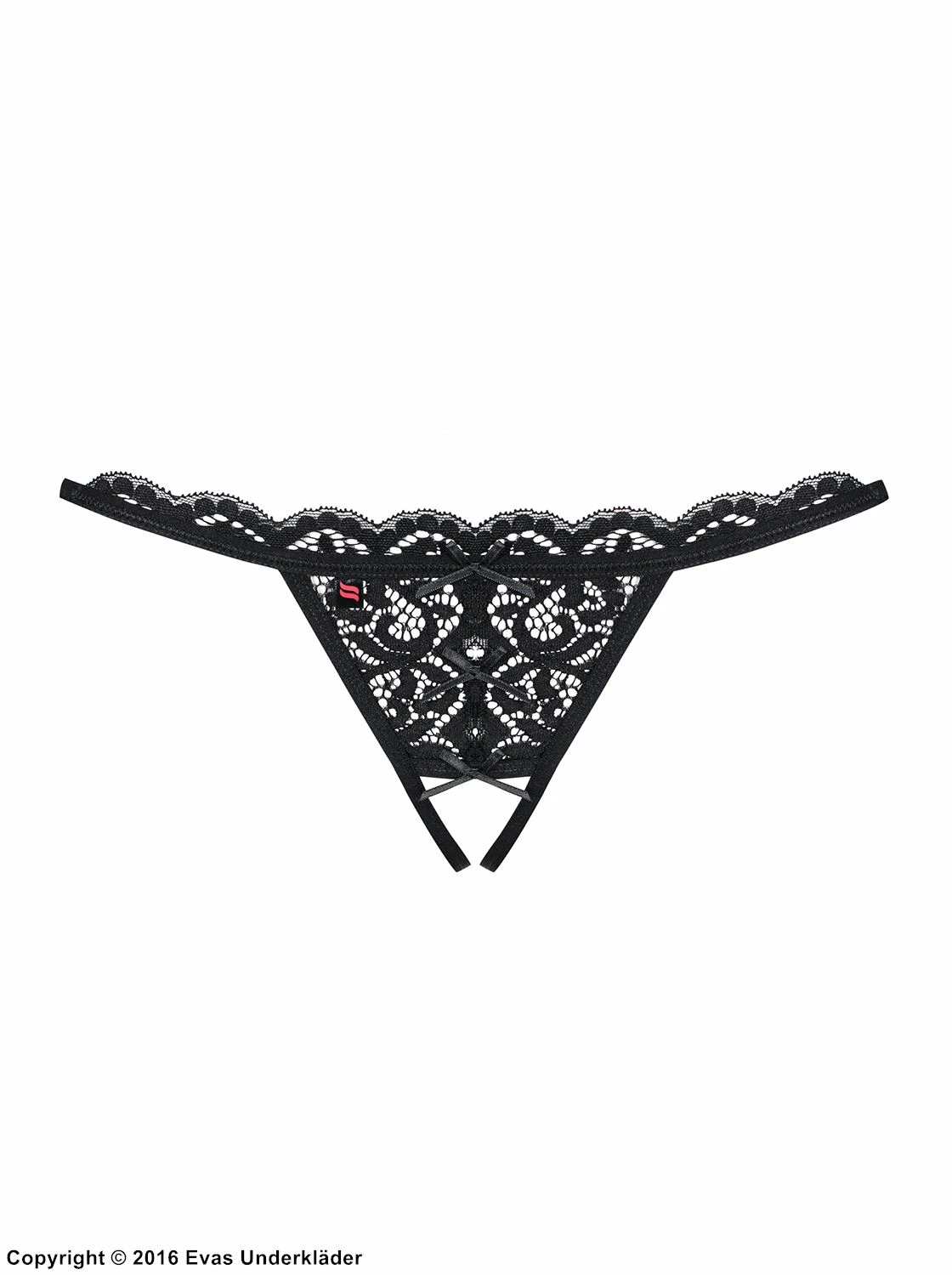 Lace; open crotch; satin bow - Fabric specification: 90% polyamide, 10% elastane (a.k.a Spandex / Lycra)