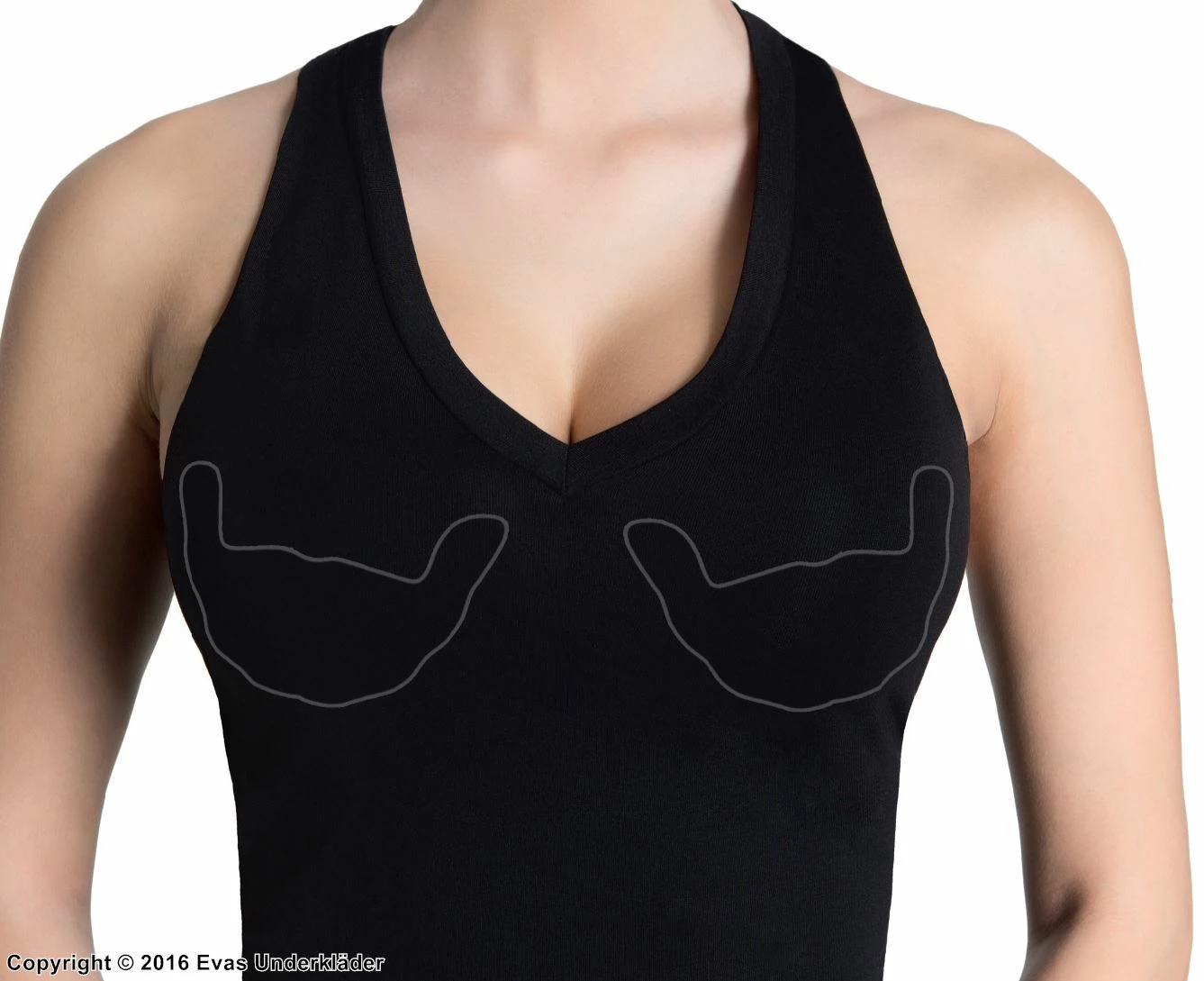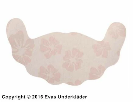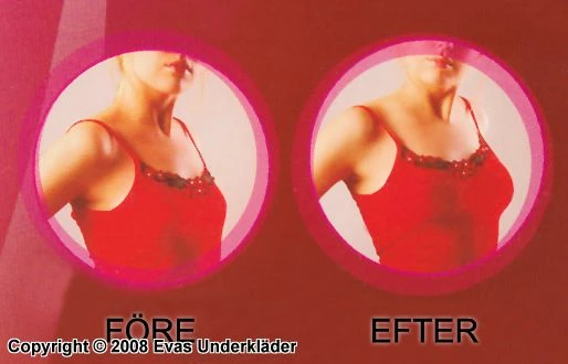 Sticker bra cups help to lift and separate the breasts under the sheerest or most revealing materials. The stick-on bra cups are nude colored to match skin tones and just lift the bottom of the bust and hold it in place. The stick-on bra holds the bust in place without any straps or wires. The stick-on bust has the appearance of wearing no underwear under a top, but with support. The stick-on bra is perfect under a strapless, backless dress.
