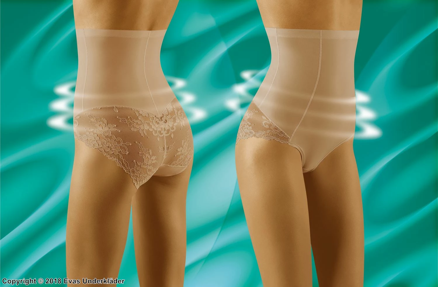 Lace panel; very high waist - Fabric specification: 58% polyamide, 42% elastane (a.k.a Spandex / Lycra)