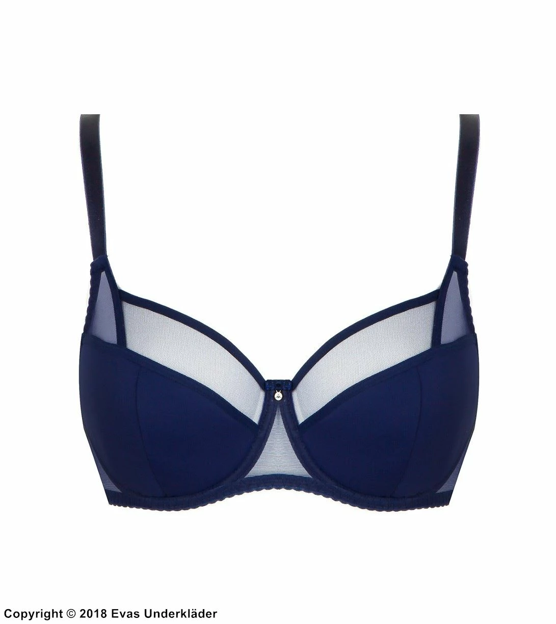 Romantic Big Cup Bra, Wide Shoulder Straps, Partially Sheer Cups, Luxurious Lace, D To M-cup